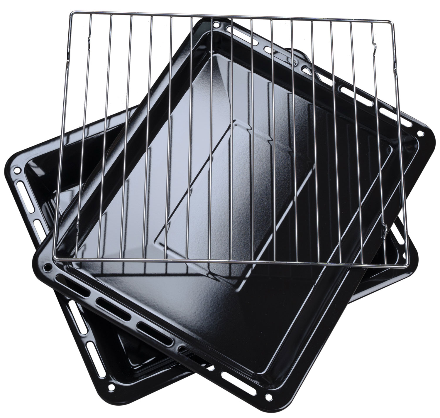 металлическая решётка, плоский противень, глубокий противень.