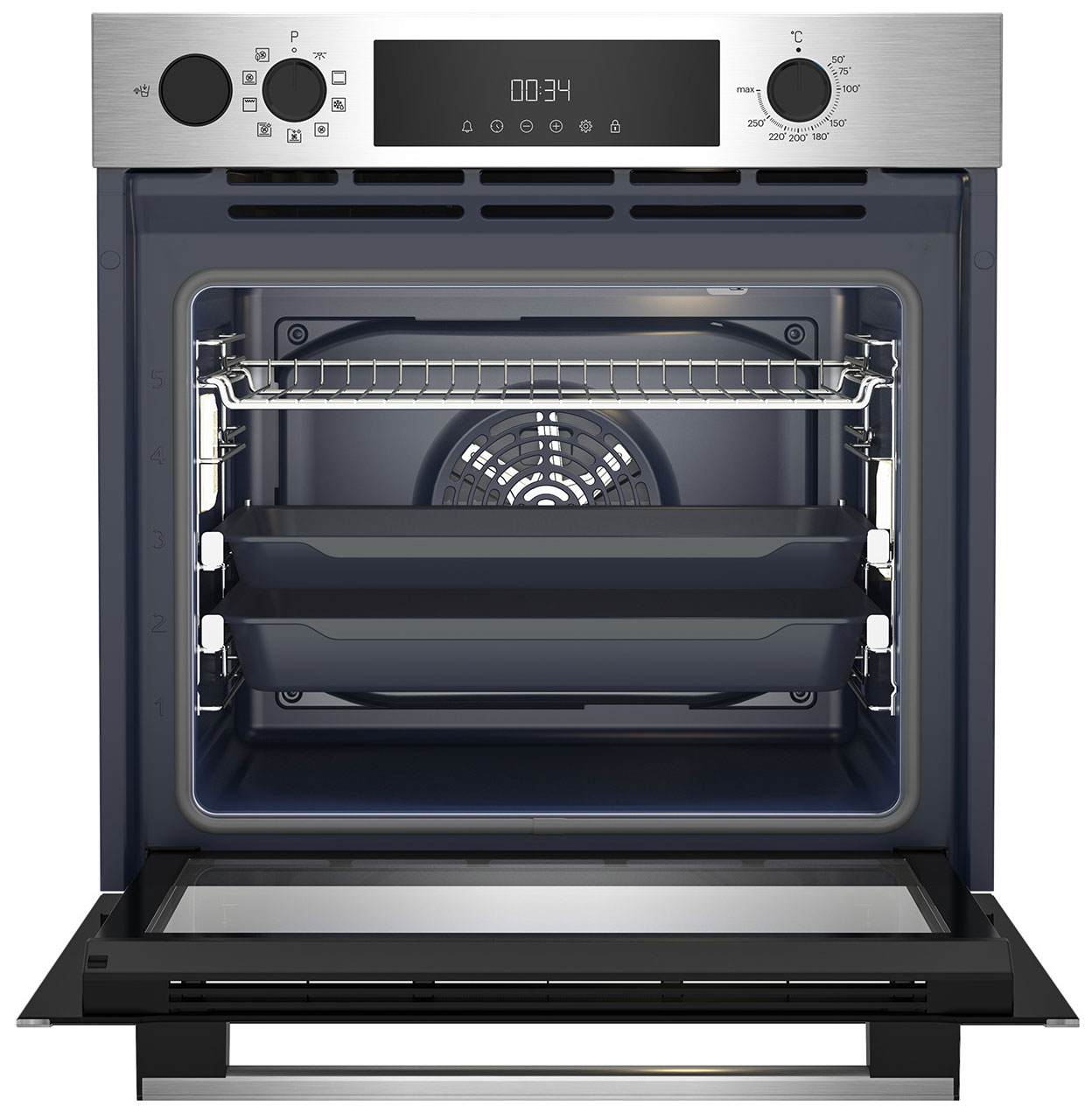 Объём духовки: 71 л. Максимальная заявленная мощность: 3300 Вт. Максимальная выставляемая температура: 280 °C. Тип управления: сенсорные кнопки и поворотные механические регуляторы. Внутреннее покрытие камеры: эмаль. Телескопические направляющие: да. Конвекция: есть. Напряжение и частота: 220–240 В, 50 Гц. Длина комплектного кабеля: 115 см.