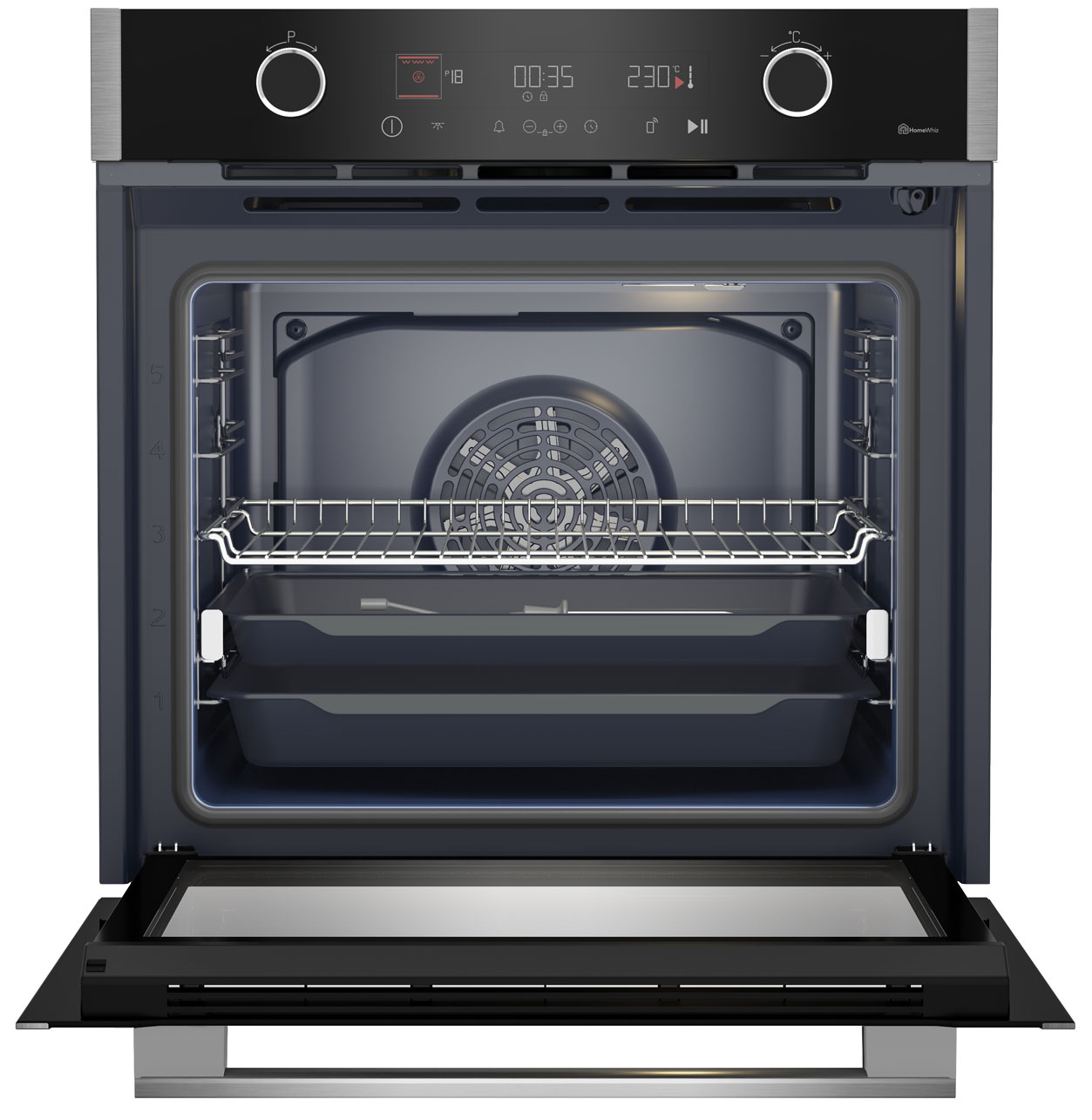 Материал панели управления: Металл + стекло Открытие дверцы: Фронтальное Полностью стеклянная внутренняя поверхность дверцы: съемная Съемные направляющие для противней Телескопические направляющие: полностью выдвижные Плавное закрытие дверцы SoftClose: плавное открытие и закрытие Класс энергопотребления: A+ Энергопотребление при обычном нагреве: 0.99 кВт/ч Энергопотребление при нагреве с конвекцией: 0.69 кВт/ч