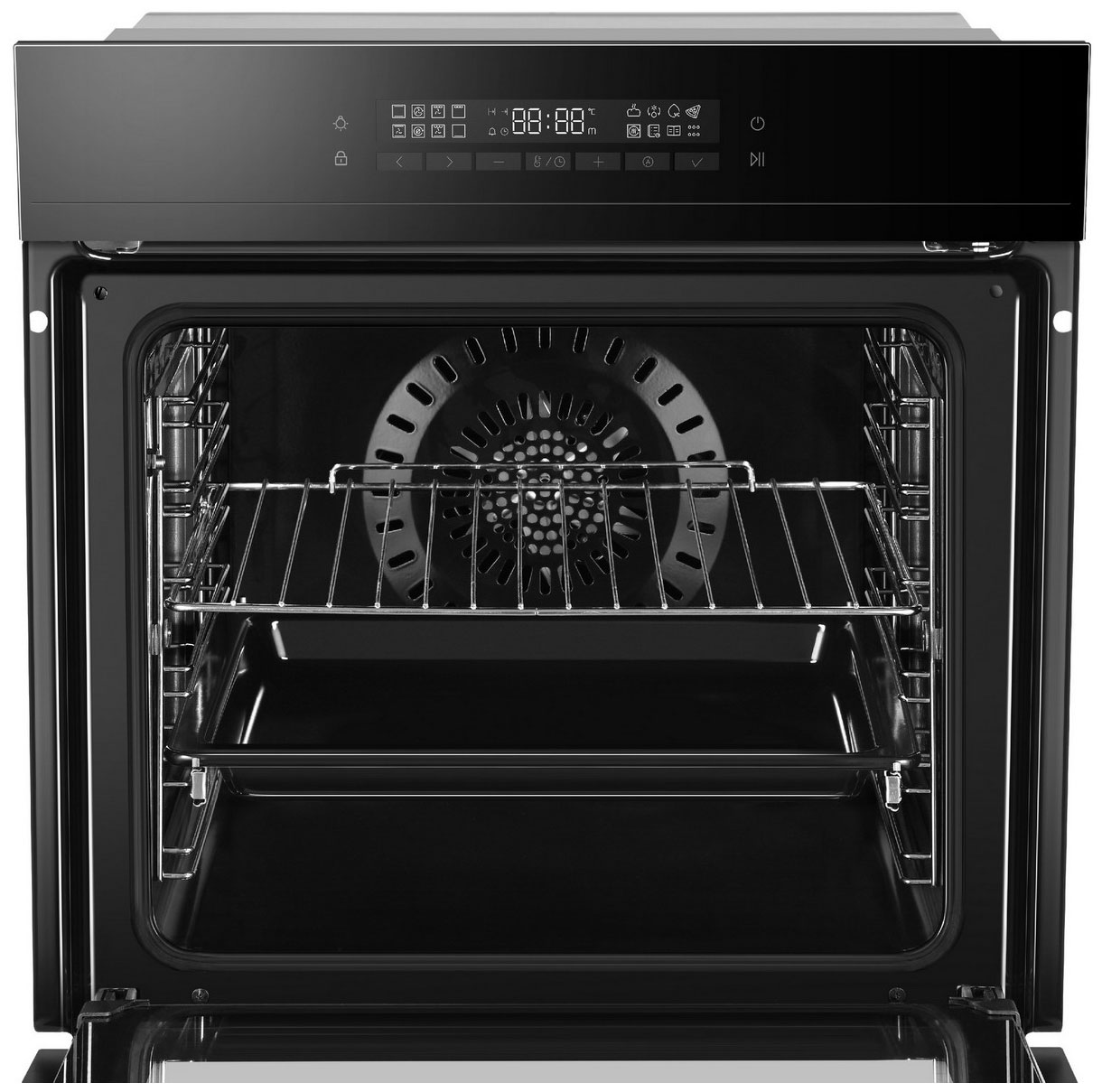 Режим AirFry. Обеспечивает высокую скорость теплопередачи и циркуляции горячего воздуха, что гарантирует равномерный нагрев и быстрое приготовление блюд. Приготовление под вакуумом. Этот режим помогает сохранить полезные вещества и раскрыть вкус продукта. Сохранение последнего использованного режима. Можно сохранить до трёх режимов в памяти техники и использовать их одним нажатием. Пошаговое приготовление. Можно установить до трёх этапов нагрева в рамках одной программы приготовления. Авторецепты. В духовом шкафу запрограммированы популярные рецепты для запекания различных видов мяса. Функция разморозки. Позволяет размораживать продукты питания и сразу начинать их приготовление. Защита от детей. Специальная система безопасности, которая обеспечивает полную блокировку управления. Встроенная подсветка. Даёт возможность следить за блюдом без открытия дверцы. Класс энергопотребления A+. Маркировка говорит о большей эффективности духовки — на 20–25% экономичнее по сравнению с классом А.