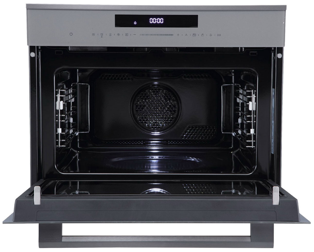 Сенсорное управление. Позволяет касанием включить или выключить подсветку камеры, выбрать режим нагрева, температуру, настроить таймеры или заблокировать управление. Функция микроволн. С её помощью можно разморозить еду или подогреть готовые блюда. Автоматические программы приготовления. Достаточно выбрать рецепт на панели управления, и духовой шкаф самостоятельно выберет температуру, режимы нагрева и время приготовления. Гриль. Способ приготовления пищи с помощью теплового элемента, который расположен над готовящимся блюдом. Режим размораживания. Деликатно распределяет воздух комнатной температуры по всей камере, размораживая продукт без воздействия температур. Тройное остекление дверцы. Специальные материалы стекла обладают свойствами защитного экрана, удерживающего тепло внутри камеры, а конструкция дверцы с применением трёх стёкол позволяет снизить температуру фронтальной поверхности до минимума. Система автоматического охлаждения. Боковые стенки духового шкафа постоянно охлаждаются благодаря циркуляции холодного воздуха. Стеклянный противень. Благодаря своей текстуре, стеклянный противень проще отмывается, а продукты меньше пригорают в процессе приготовления.