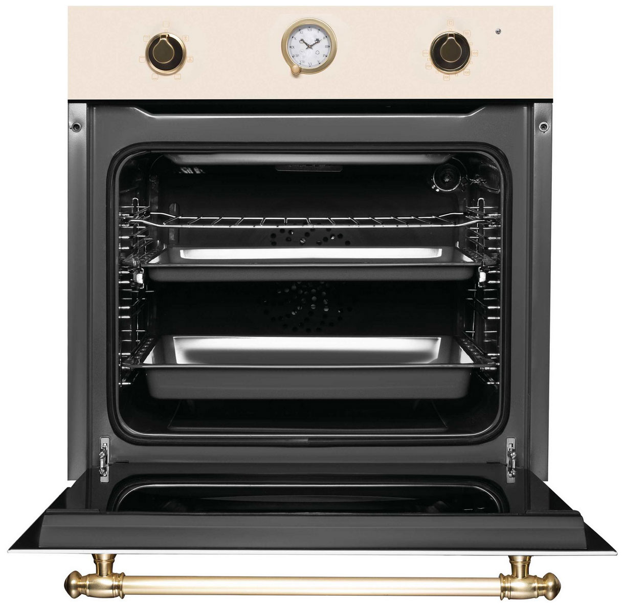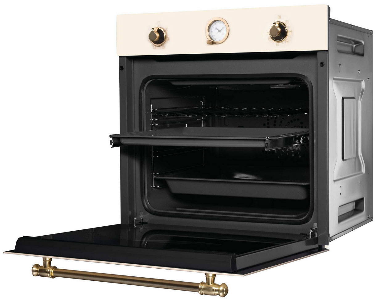 6 режимов нагрева: традиционный (верхний и нижний), верхний и нижний нагрев, конвекция, большой гриль, размораживание. Электронный таймер с функциями звукового сигнала, отключения и отложенного старта. Система тангенциального охлаждения создаёт воздушный барьер, защищая электронику и окружающую мебель от перегрева. Дверца с двойным остеклением обеспечивает хорошую теплоизоляцию и защиту от ожогов. Каталитическая очистка внутренней камеры объёмом 73 литра. Специальное покрытие на стенках активно расщепляет жир и загрязнения при высоких температурах прямо во время готовки. Телескопические направляющие на одном уровне внутренней камеры облегчают установку и извлечение тяжёлых противней, особенно с готовыми блюдами. Класс энергопотребления A гарантирует экономичное использование электроэнергии. В комплект входят противень для выпечки, хромированная решётка и глубокий противень.