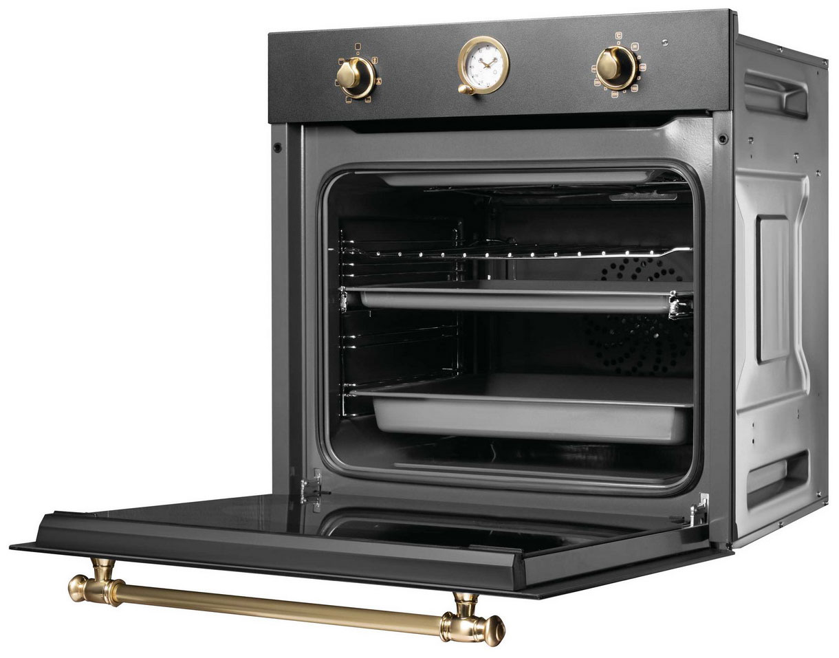 Конвекционный нагрев. Вентилятор обеспечивает постоянную циркуляцию горячего воздуха по всей камере, что позволяет равномерно запекать блюдо со всех сторон и даже на нескольких уровнях. Гриль. Способ приготовления пищи с помощью инфракрасного ТЭН-а, который расположен в верхней части камеры духовки. Освещаемая камера. Лампа освещения включается автоматически при выборе режима приготовления, что позволяет следить за процессом приготовления, не открывая дверцу и не выпуская тепло из рабочей камеры. Автоматическое отключение. Специальный защитный элемент автоматически отключает духовой шкаф в случае, если пользователь забыл это сделать сам. Время экстренного отключения зависит от ранее выбранной температуры. Двойное остекление дверцы. За счёт плотно закрывающейся дверцы горячий воздух остаётся внутри, при этом сама дверца не нагревается и об неё невозможно обжечься. Тангенциальное охлаждение. Функция защиты от высоких температур, случайной смены настроек и непредвиденных ситуаций.
