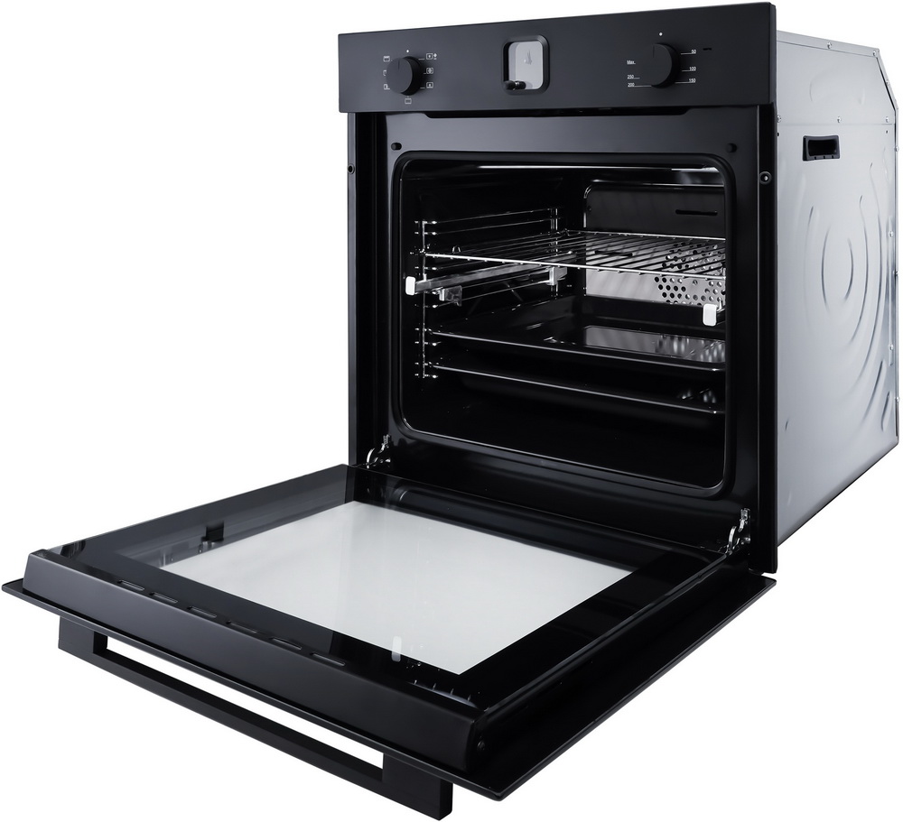 Каталитическая самоочистка. Поверхность задней стенки покрыта специальным веществом, которое самостоятельно расщепляет загрязнения. Для очистки необходимо прогреть камеру до температуры свыше 200 °C, после чего все жировые загрязнения растворяются. 7 режимов нагрева. Включают большой гриль, верхний конвекционный нагрев, горячий воздух, конвекционный нагрев, нижний конвекционный нагрев, размораживание и традиционный нагрев. Система автоматического охлаждения. Боковые стенки духового шкафа постоянно охлаждаются благодаря циркуляции холодного воздуха. Автоматическое отключение. Духовой шкаф автоматически отключается, если пользователь забыл это сделать сам. Время экстренного отключения зависит от заранее выбранной температуры. Утапливаемые поворотные регуляторы. При нажатии на поворотный регулятор, он фиксируется внутри панели управления, создавая прямую и ровную поверхность. Это делает невозможным случайный поворот регулятора, а также облегчает последующую очистку фронтальной панели. Трёхслойное остекление духовки. Духовой шкаф оснащён дверцей с тремя слоями стекла. Наружный слой не нагревается выше приемлемой температуры даже при самых «жарких» режимах приготовления в духовке.