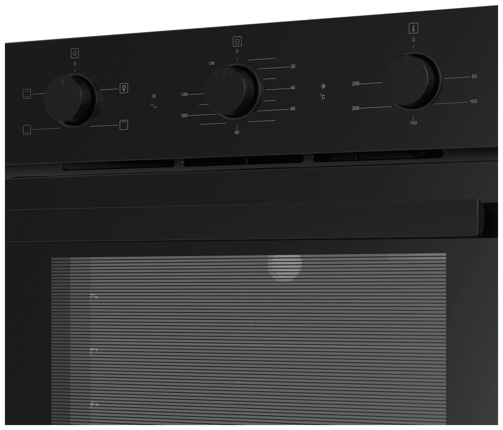 Пять уровней для установки противня или решётки. Можно готовить сразу несколько блюд. Три режима работы: верхний нагрев, нижний нагрев и комбинированный. Максимальная рабочая температура — 250 °С. Таймер позволяет установить время приготовления блюда от 0 до 120 минут и автоматически отключит печь по его истечении. Подсветка внутри духового шкафа для удобства использования. Утапливаемые переключатели на панели управления, что облегчает очистку и предотвращает случайное переключение детьми. Гидролизная система очистки. Пар высокой температуры расщепляет загрязнения и жир, после чего остаётся лишь протереть поверхности. Тангенциальная система охлаждения предотвращает нагрев корпуса, дверцы и ручек прибора. Класс энергопотребления — А, что говорит о низком потреблении электричества.