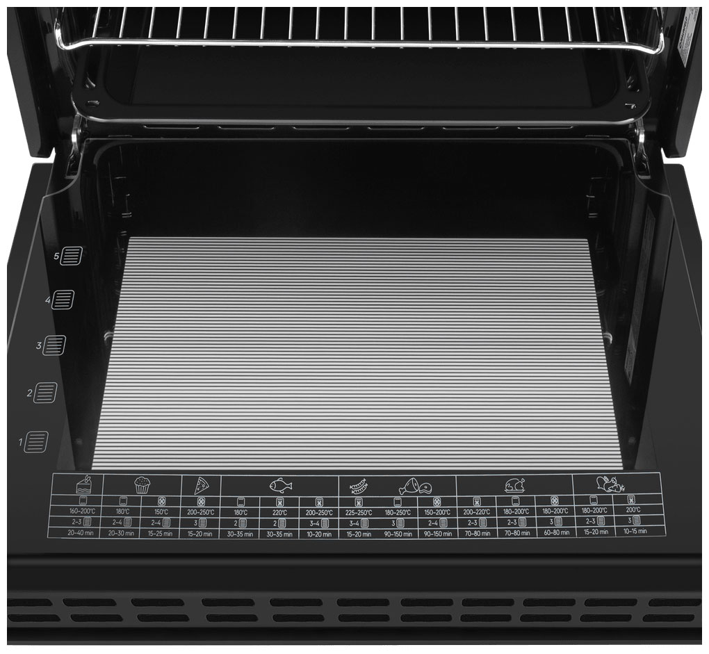 Сенсорное управление Большой цифровой дисплей 5 уровней приготовления Конвекция Гриль Функция «Блокировка от детей» Технология «Холодный фронт» Освещение внутренней камеры Эмаль лёгкой очистки — В комплекте есть глубокий поддон