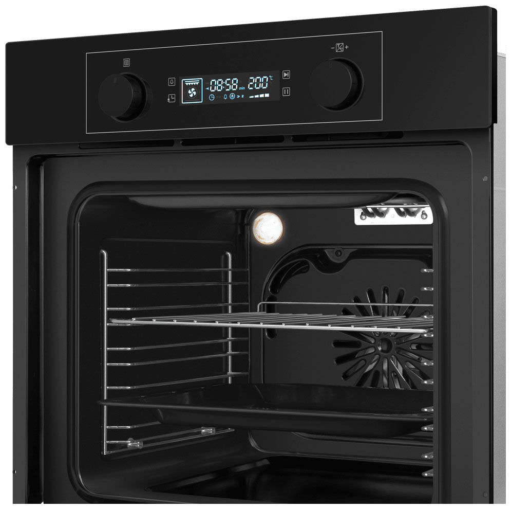 Шесть режимов приготовления: нижний газовый нагрев, конвекция с верхним и нижним нагревом, гриль, гриль с конвекцией, ECO и размораживание. Внутреннее освещение обеспечивает отличную видимость при приготовлении пищи. Функция «Блокировка от детей» предназначена для блокирования элементов управления во избежание случайного включения духового шкафа детьми. Технология «Холодный фронт» оберегает от ожогов при прикосновении к духовке. Трёхслойное остекление духовки. Наружный слой не нагревается выше приемлемой температуры даже при самых «жарких» режимах приготовления в духовке. Утапливаемые переключатели духовки. Поворотно-нажимные элементы управления защищены от случайных переключений. Класс энергопотребления А — гарантия эффективности устройства при минимальном расходе электроэнергии.