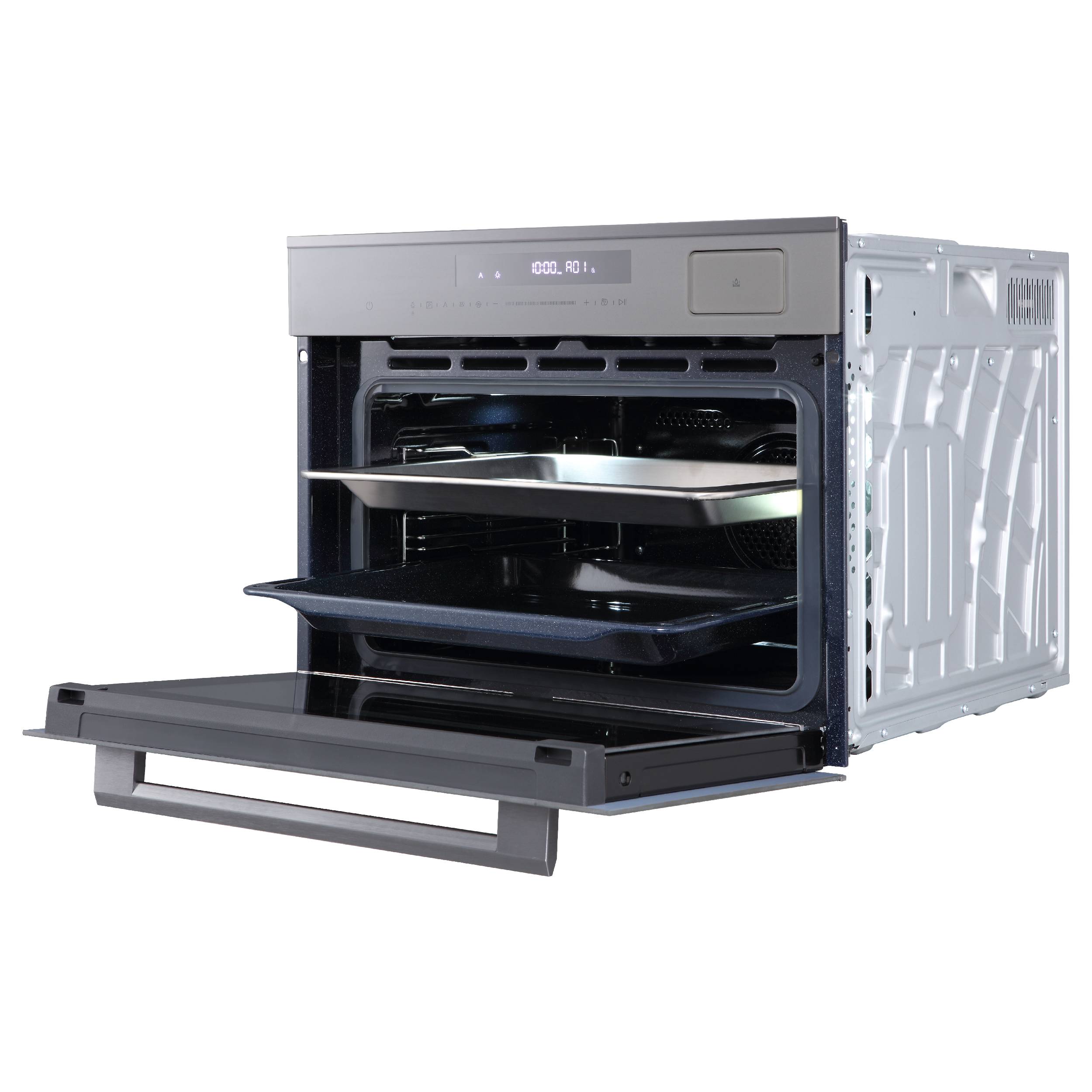 Сенсорное управление. Настройка программ и времени приготовления происходит с помощью прикосновения. Трёхслойное остекление духовки. Наружный слой не нагревается выше приемлемой температуры даже при самых «жарких» режимах приготовления. Функция паровой очистки. Steam Cleaning размягчает загрязнения, после чего их легко удалить. Внутренняя эмаль с антипригарными свойствами. Этот особый слой создаёт гладкую поверхность, которая устойчива к воздействию жара и агрессивных средств. Встроенный парогенератор. Он открывает доступ к таким режимам, как SteamChef, пар с горячим воздухом, пар с кольцевым нагревом и специальный цикл для пиццы. Функция «Защита детей». Она блокирует панель управления, поэтому дети не смогут случайно активировать работу устройства. Автоматическое отключение. Функция защиты техники, может сработать в нескольких случаях, например при выставлении таймера на приготовление во времени.