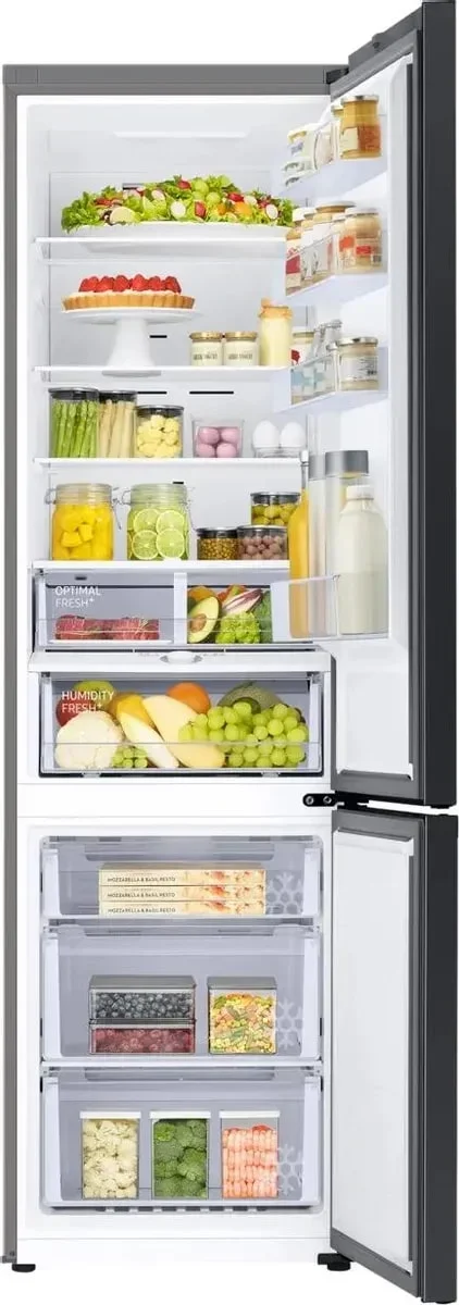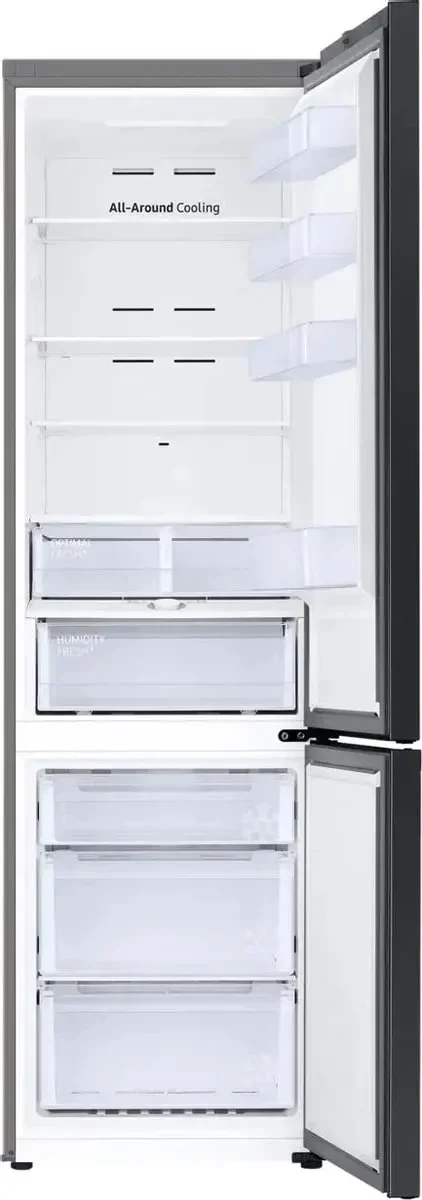 Система No Frost в обеих камерах обеспечивает полное отсутствие инея и льда, поэтому холодильник не нужно размораживать вручную. Технология All-Around Cooling обеспечивает многопоточную циркуляцию воздуха для равномерного охлаждения и поддержания стабильной температуры. Циркуляционное охлаждение происходит с помощью вентилятора, установленного в холодильной камере. Благодаря этому обеспечивается равномерное насыщение всей камеры воздухом и поддерживается один уровень влажности на каждой полке. Класс энергоэффективности A+ обеспечивает низкое потребление энергии. Электронное управление с дисплеем позволяет точно настраивать температурные режимы.