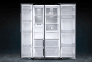 Модель Samsung RS61R5001M9 отличается цельным, лаконичным дизайном в духе современного минимализма. Гладкая дверца без выступающих ручек легко вписывается в любой интерьер, создавая гармоничную и стильную композицию. Утопленные механизмы открывания не нарушают чистоту линий, что делает модель не только высокотехнологичным прибором, но и эстетичным элементом кухонного пространства.