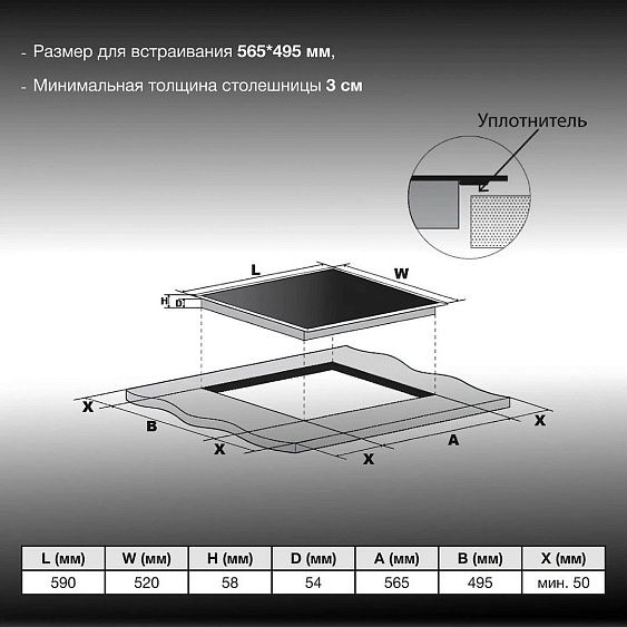 Габариты для встраивания (ШхГ)