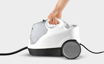 Пароочиститель от Karcher продуман до мелочей. В его конструкции предусмотрены встроенные отсеки для компактного хранения сетевого кабеля и всех аксессуаров. Удобный держатель позволяет надежно «припарковать» насадку для пола вместе со шлангом во время перерыва, поддерживая порядок на рабочем месте.