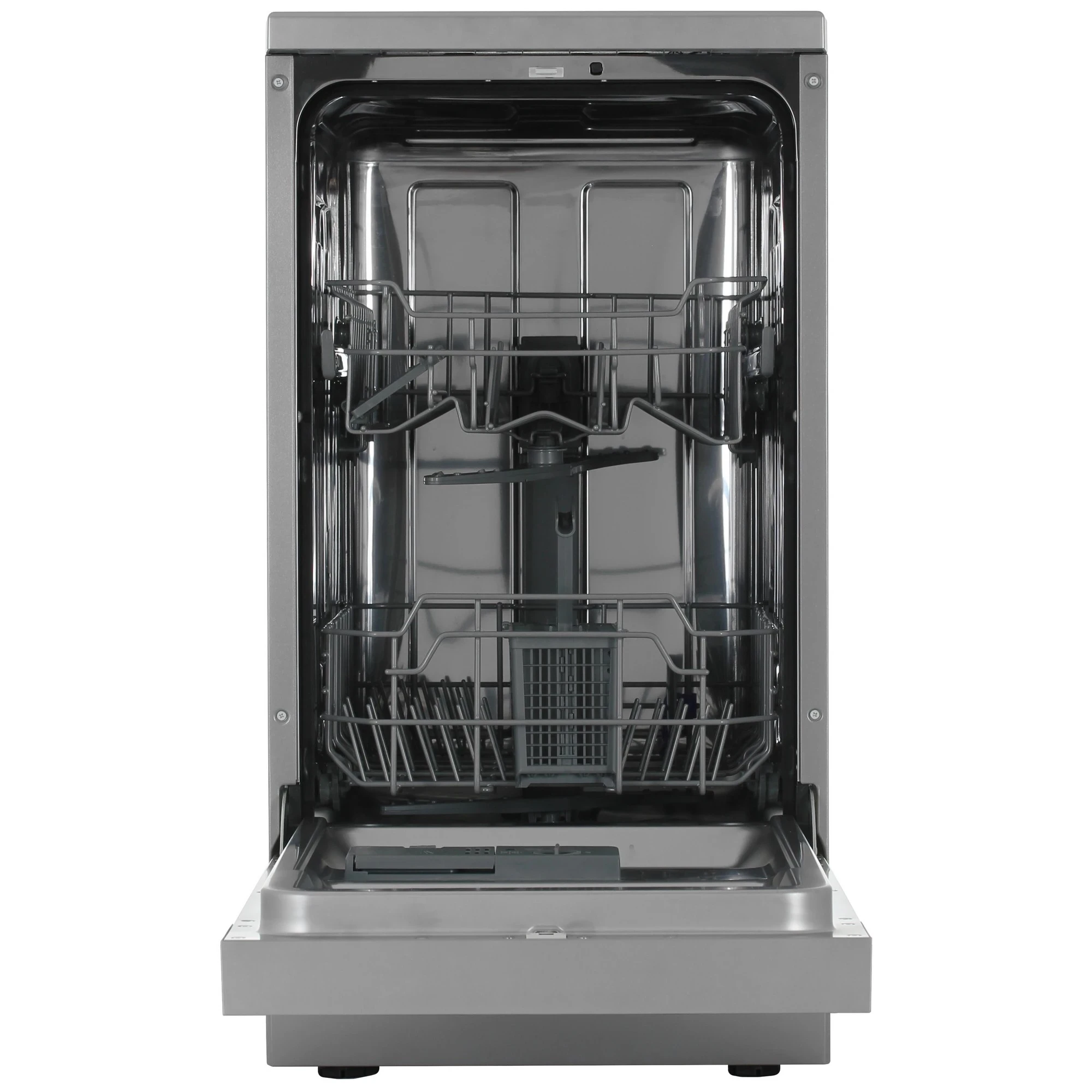 Возможность подключения к горячей воде. Максимальная температура поступающей воды — 65 °C. Регулируемая по высоте корзина для посуды. Отдельная корзинка для столовых приборов. Полка для чашек — особенность конструкции корзин.