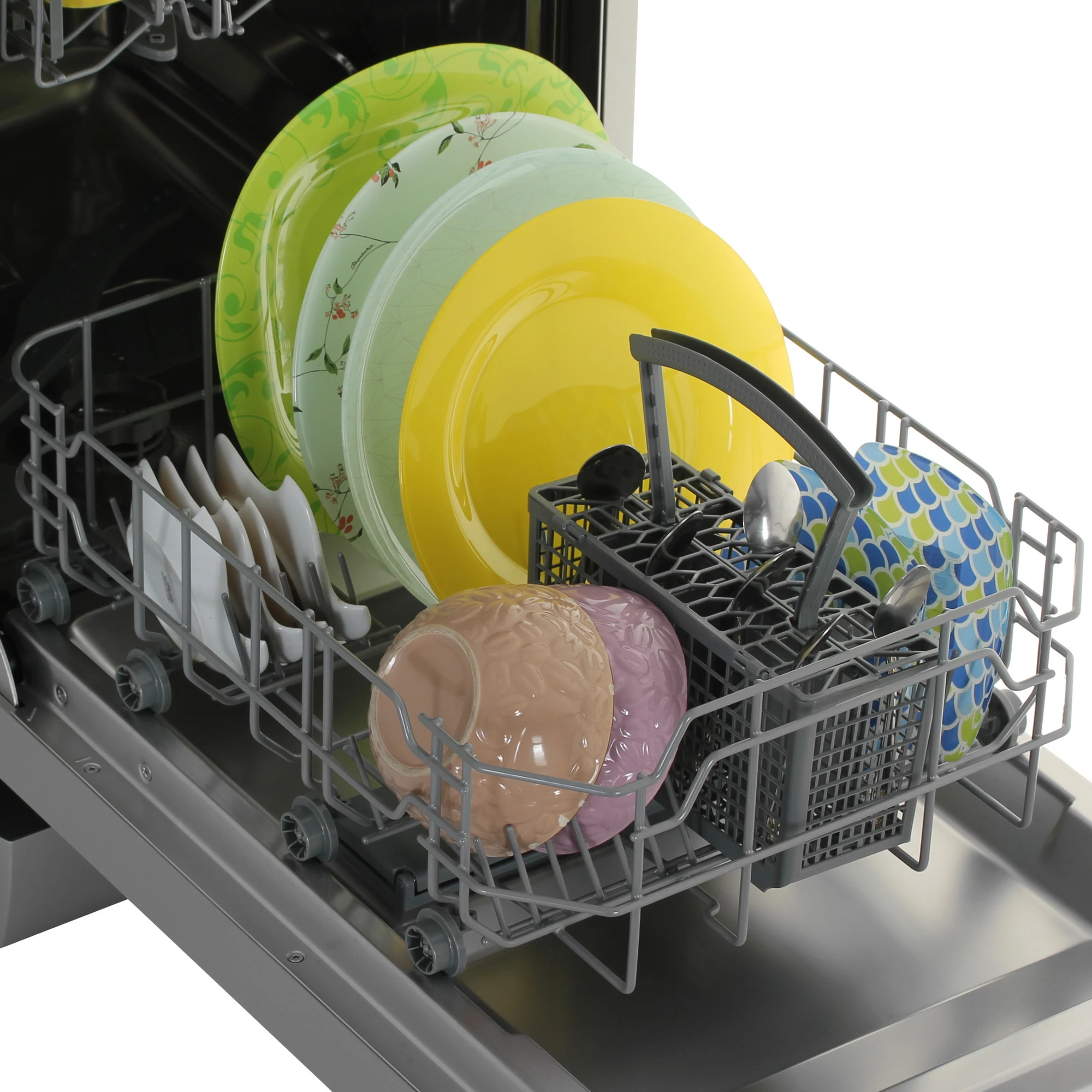 Маленькая корзина для столовых приборов. Нижняя корзина. 6 держателей для тарелок. 2 складных держателя для тарело